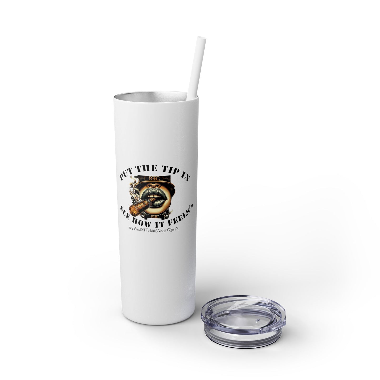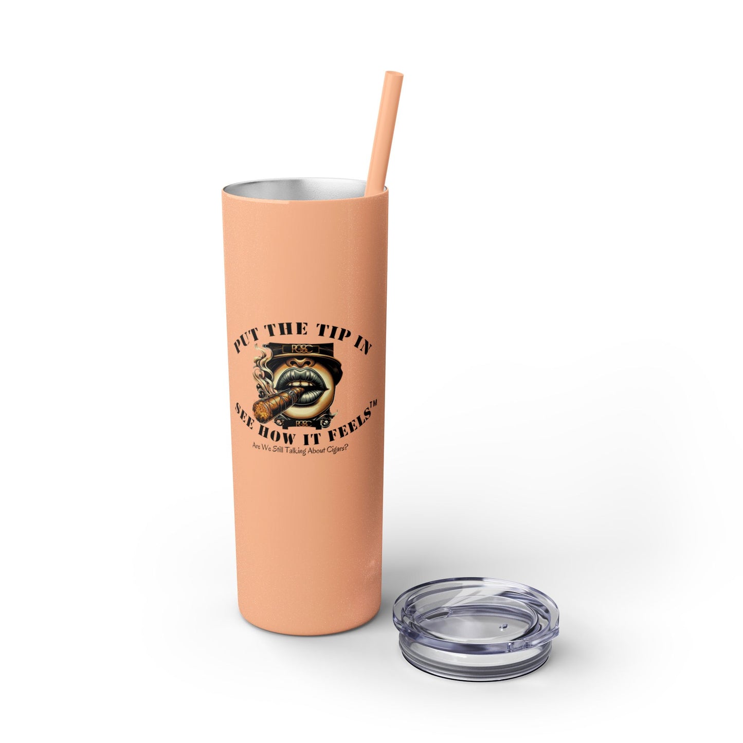 The PT  skinny tumblers keep your drinks hot for 12h and cold for 24h, making them the perfect sipping companion all year round. With 20oz capacity, our PT  tumblers come in a matte or glossy finish, and feature a tapered shape with a slim design for effortless carriage. The plastic press-on lid with color-matching straw makes for great practicality on the go, while all components are BPA-free and non-toxic; aka perfect for the whole family.